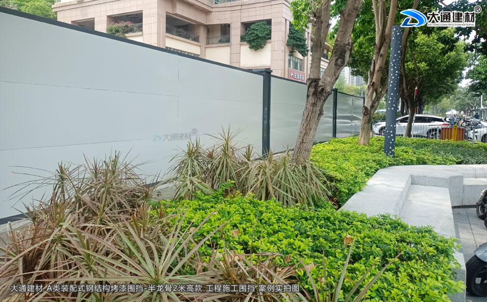 深圳城市建設城區改造工程項目選用大通建材2米高裝配式圍擋烤漆A款,具有結構牢固、可抗臺風、可回收循環利用、美觀、環保等特點,是目前業內倍受喜愛的圍擋之一。