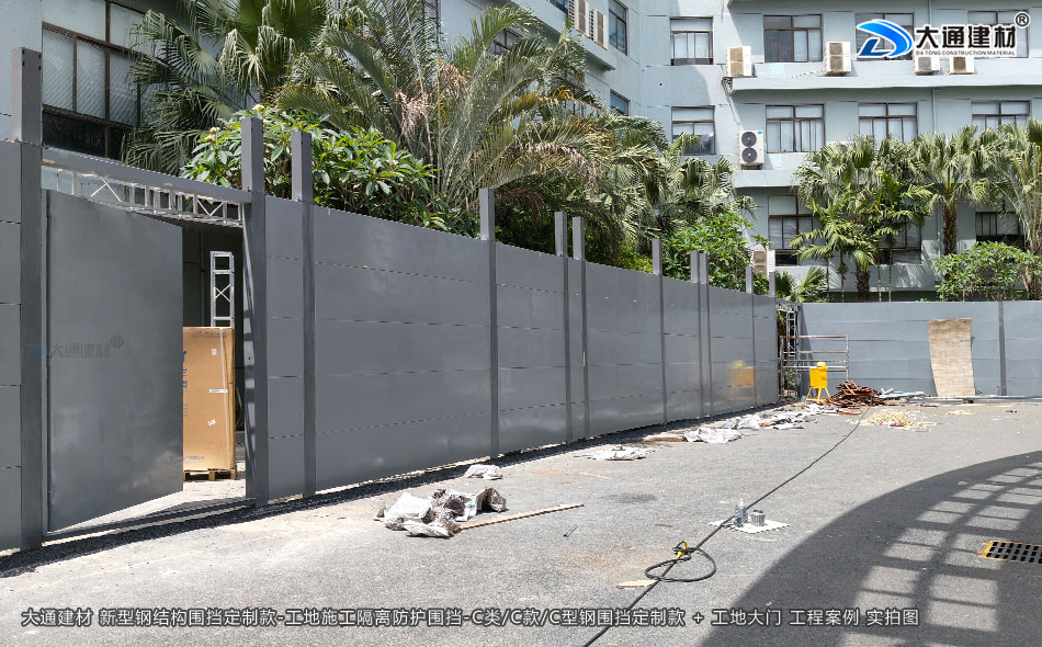 深圳市大通建材有限公司,大格局、通天下! 新型裝配式鋼結構圍擋A款/B款/C款,PVC圍擋,圍擋基礎,工地大門等產品生產廠家電話13826562448