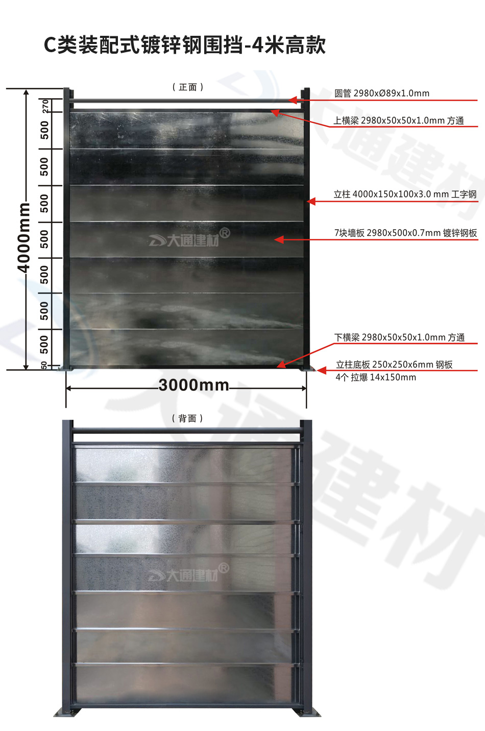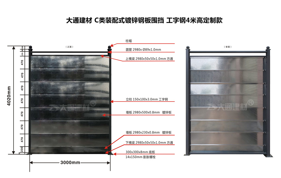 了解更多關(guān)于“大通建材 C類鋼結(jié)構(gòu)鍍鋅鋼圍擋”生產(chǎn)定制、配送安裝、零售批發(fā)的價(jià)格及規(guī)格等詳情,請致電13826562448梁先生