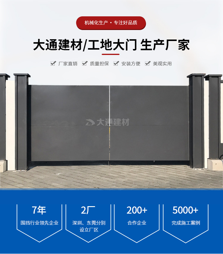 深圳市大通建材有限公司 鋼結構工地大門 施工現場大門 工程案例