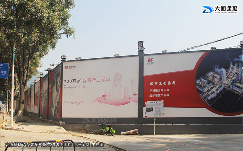 深圳市大通建材施工圍擋a款 助力建設220萬平方米智慧產業新城,成就品質東莞灣區都市。