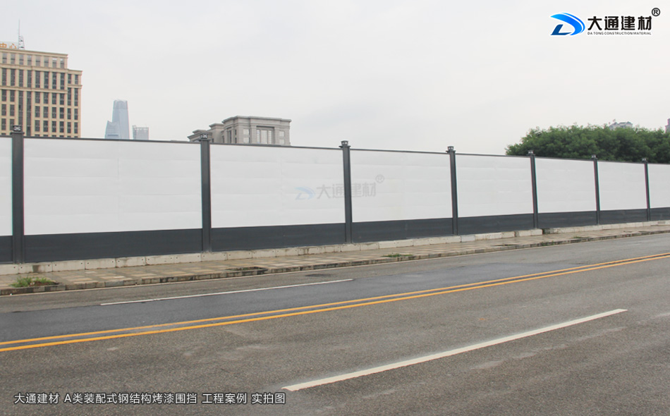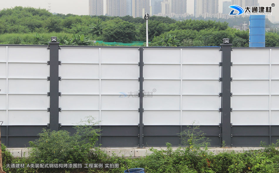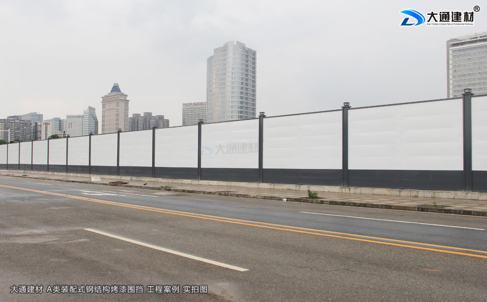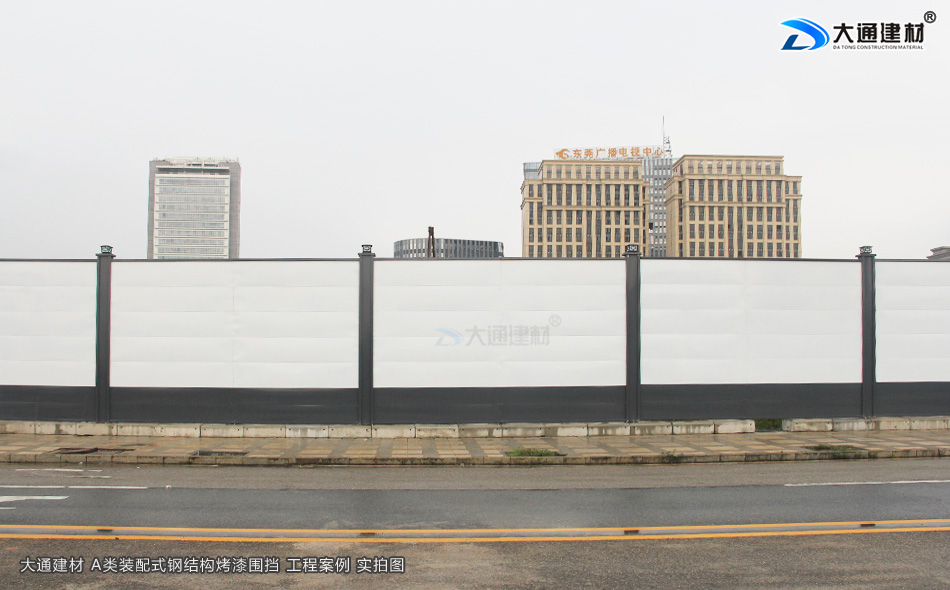 東莞城市建設(shè)圍擋使用大通建材裝配式鋼結(jié)構(gòu)圍擋烤漆A款定制4米高+圍擋基礎(chǔ)塊把施工場(chǎng)所圍起來(lái),為施工安全貢獻(xiàn)一份力量