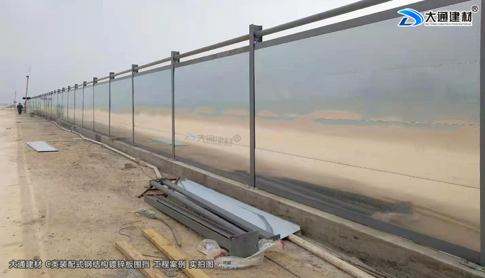 東莞建設工程項目選用深圳市大通建材有限公司生產批發的鋼結構圍擋C類,裝配式圍擋安裝方便,鍍鋅鋼板2.4米高符合工地施工圍擋要求標準