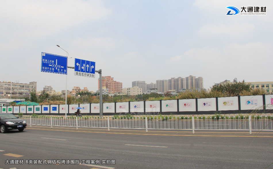 深圳市大通建材有限公司生產的符合深圳標準的裝配式B型圍擋,是一款新型鋼結構圍擋,具體有美觀、環保、抗風力強等特點,已廣泛應用到深圳特區建設的各類施工工程項目中,以下展示的圍擋圖片是大通裝配式B型圍擋應用到深圳龍華觀瀾人民路的工程案例。