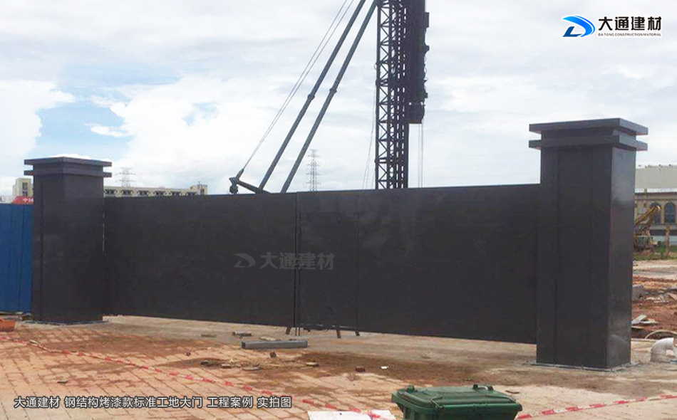 施工安全方案解決工程師,24小時在線等候您的咨詢!我們知道現在市政要求基本上每一個項目施工工地現場都需要安裝圍擋護欄后,方可施工,而施工現場工地大門基本是伴隨著施工圍擋存在的。今天大通小編與大家看看大通鋼結構烤漆款標準工地大門有哪些款式。