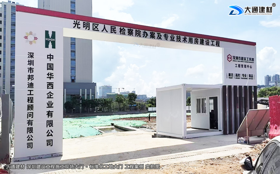 在城市的建筑工地中,工地大門猶如一個神秘世界的入口,承載著獨特意義。它不只是簡單的建筑通道,更是安全的守護屏障、形象的展示窗口以及管理的關鍵節點。深圳大通建材專業生產、定制、銷售“標準化工地大門、鋼結構烤漆工地大門、鋼結構工地大門”等各類工地大門…