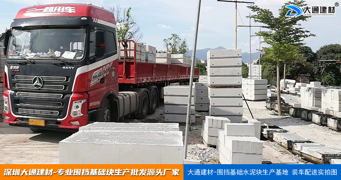 深圳市大通建材新型裝配式鋼結構圍擋A類、B類、C類總高度為2000mm-6000mm,有多種材料,施工方式一般分為三種。其中一種下是采用水泥預制塊圍擋基礎:預制塊基礎尺寸:1000*600*300mm、整齊擺放,空位穿50*50mm鋼管,用混泥土四周加固。