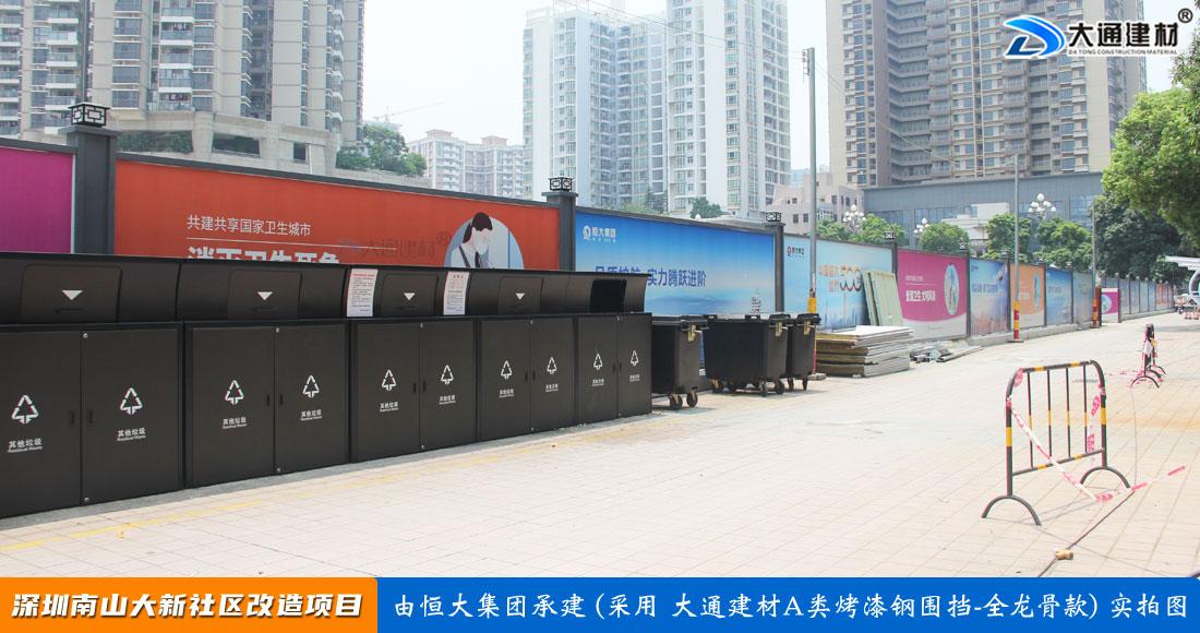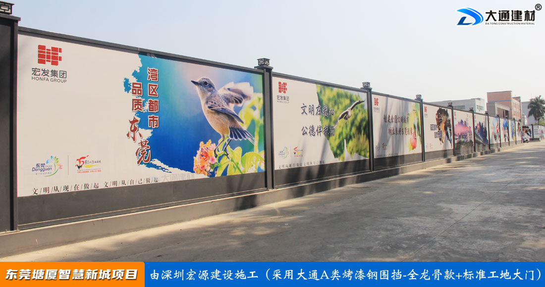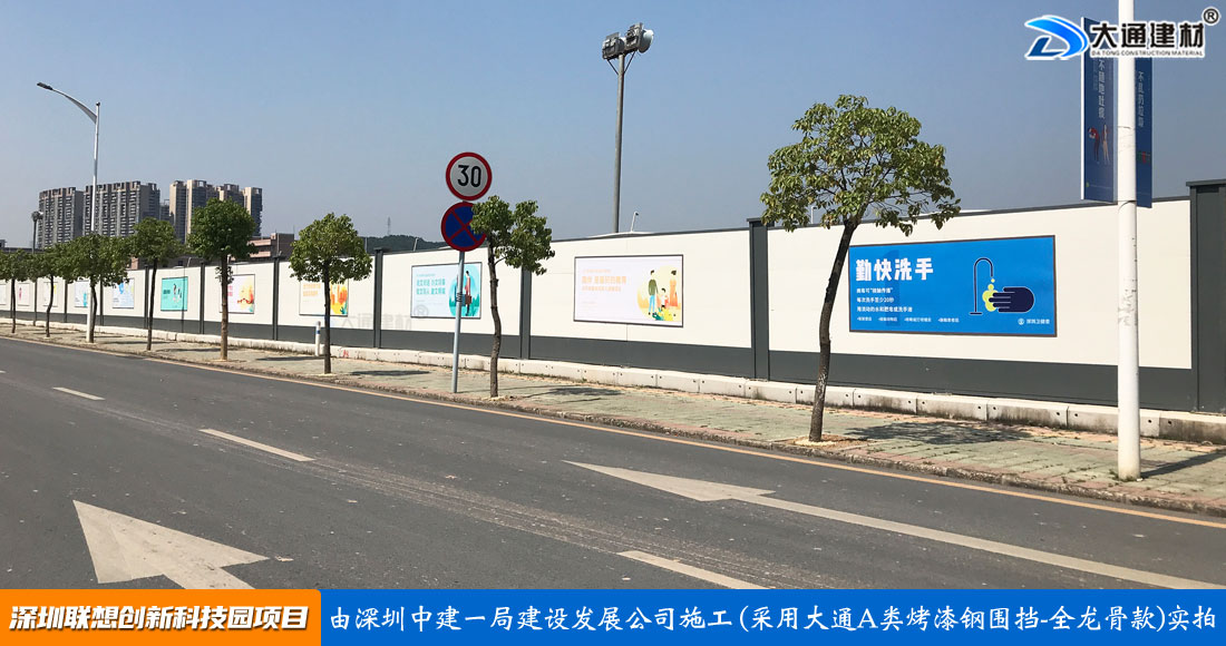 大通建材A類烤漆鋼圍擋-全龍骨款 具有“美觀環(huán)保、抗風(fēng)能力強(qiáng),安全穩(wěn)固、無損耗、無建筑垃圾,拆裝快捷、可多次重復(fù)使用,可疊放、便于運(yùn)輸和儲(chǔ)存,外觀具有美化城市環(huán)境”等優(yōu)點(diǎn),適合房地產(chǎn)修建、市政工程、交通道路等工程建設(shè)項(xiàng)目現(xiàn)場(chǎng)使用。