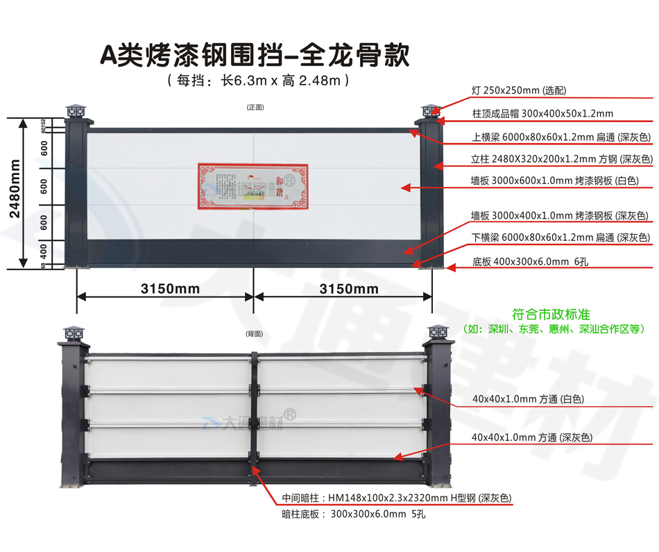 大通 A類烤漆鋼圍擋-全龍骨款 特點(diǎn)