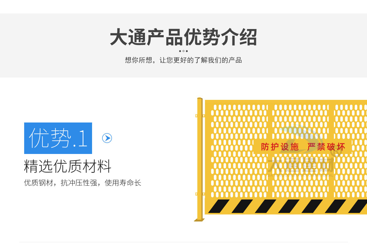 當(dāng)前位置:首頁(yè)>產(chǎn)品中心>圍欄護(hù)欄圍擋>工地基坑護(hù)欄-施工現(xiàn)場(chǎng)沖孔防護(hù)欄-06網(wǎng)格款